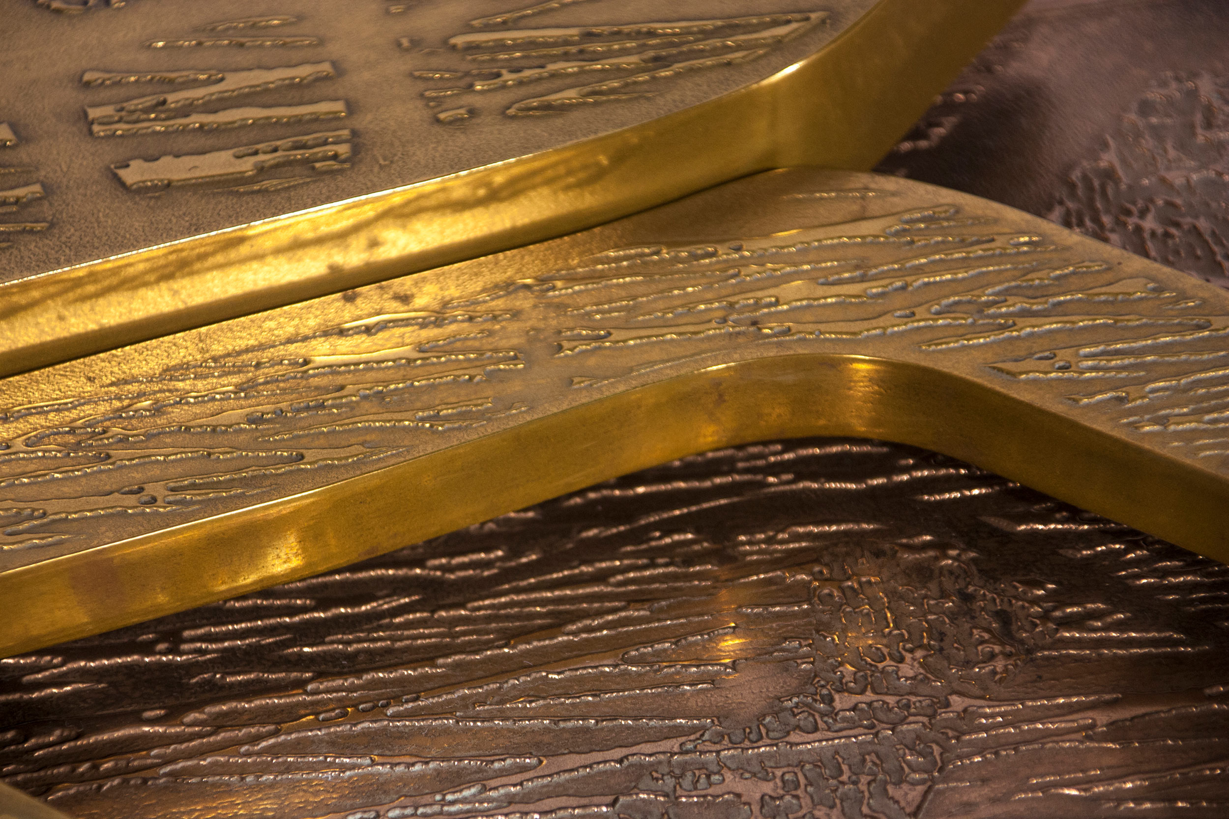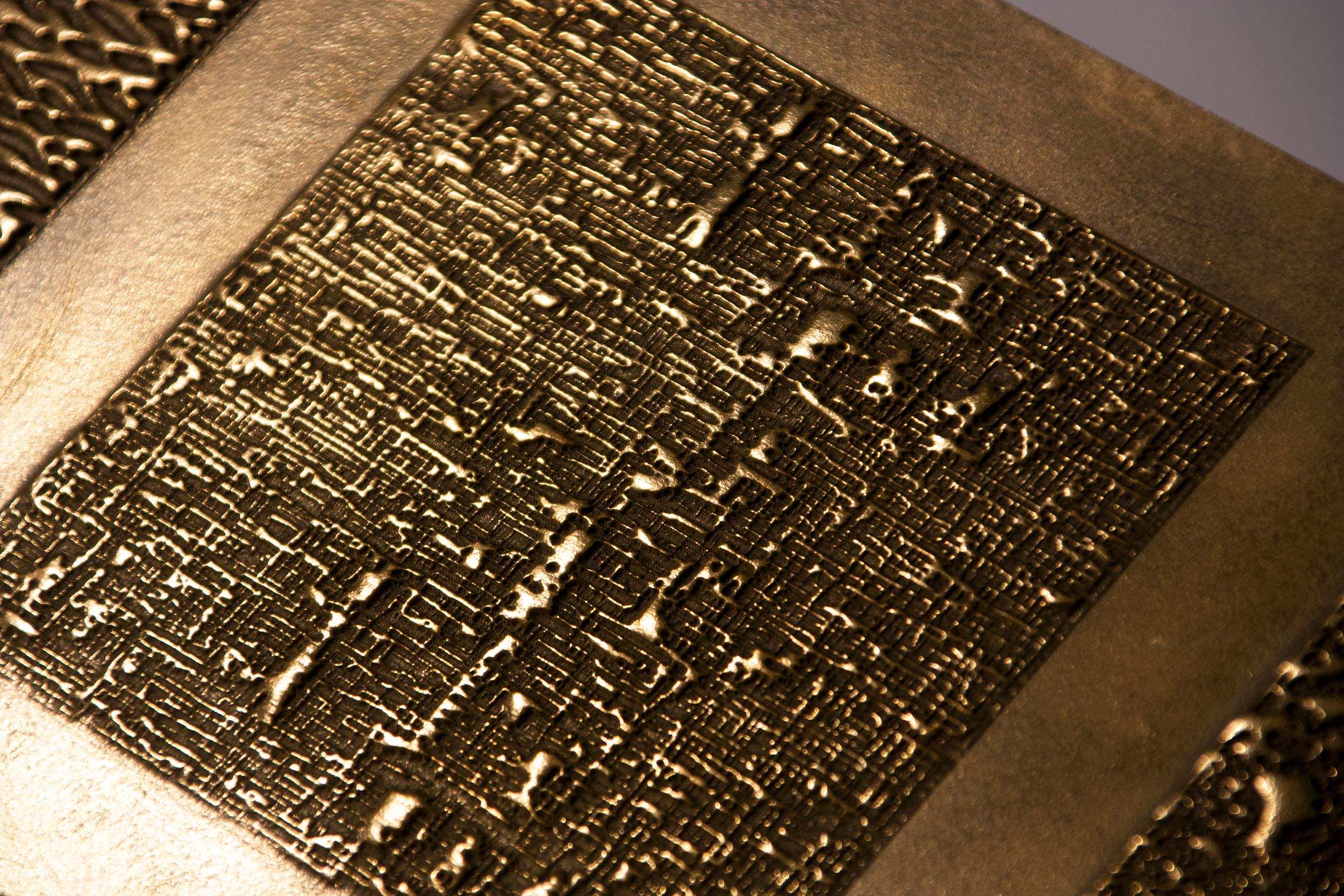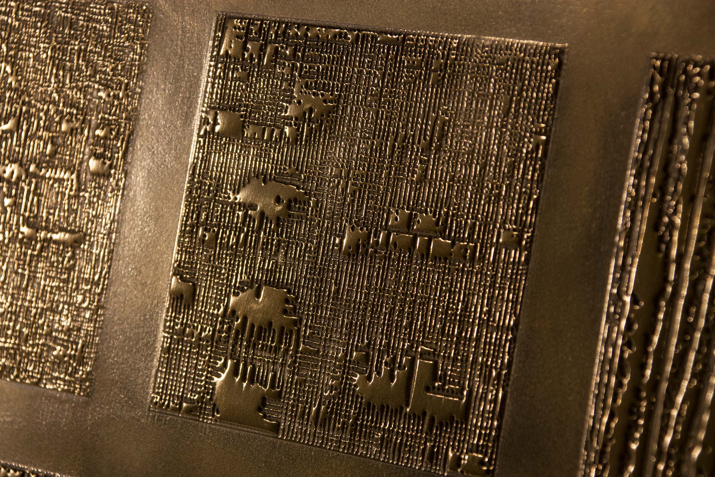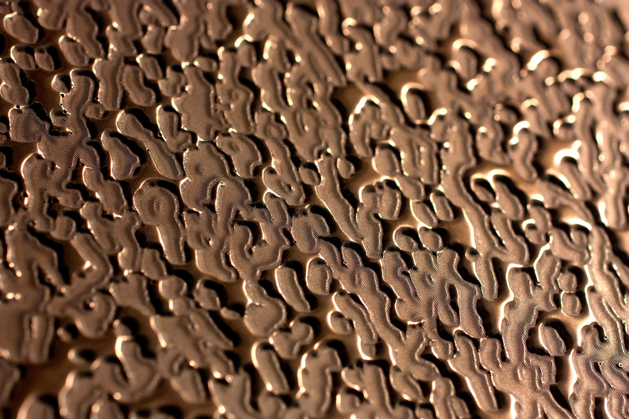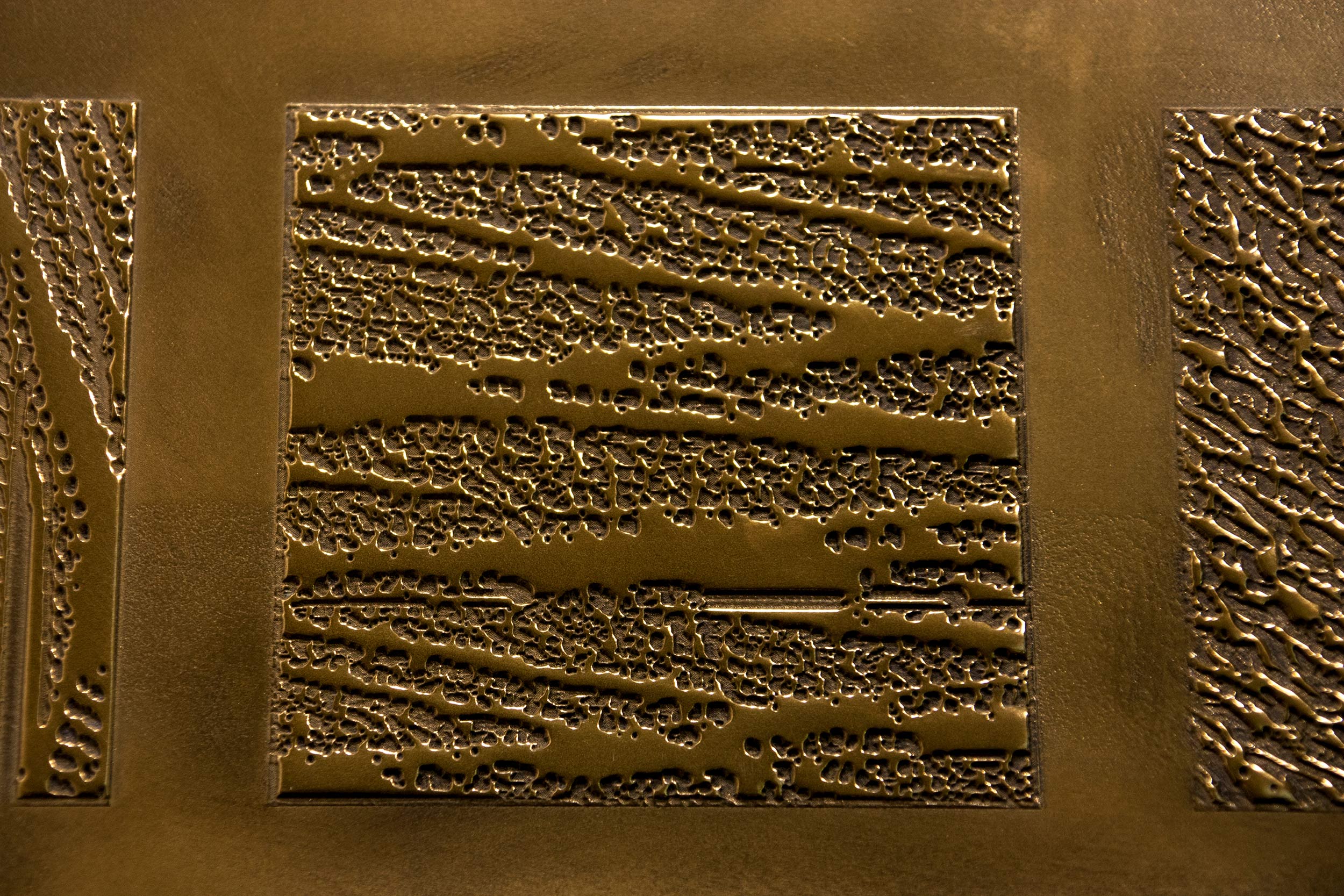 We have produced cast aluminium, bronze and zinc surfaces. For a prestigious fashion house we produced over 180m2 of sandcast aluminium surfaces which were textured and finished with a bronze finish.