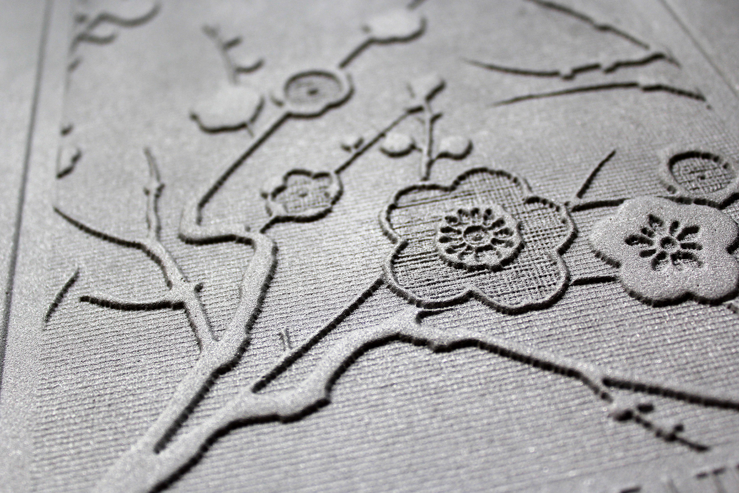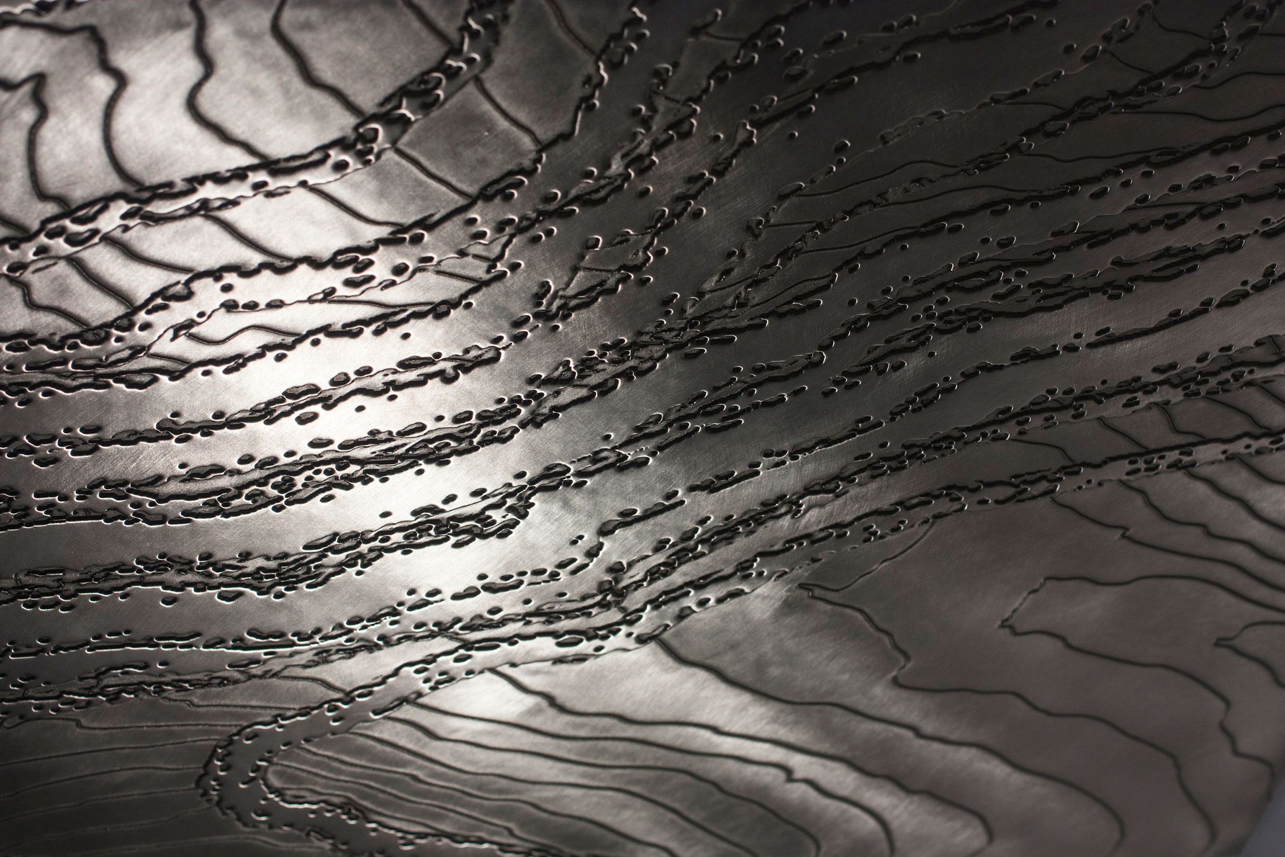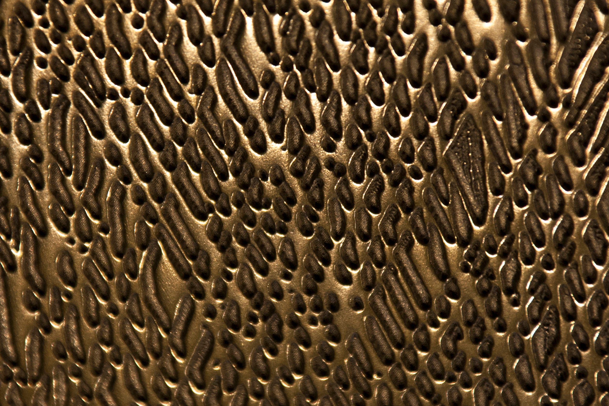 Using ‘liquid metal’ techniques either sprayed or poured into our moulds we can achieve much better results with minimal loss of detail compared to approaches which coat the surface. The liquid metal picks up all the detail from the mould and can be laminated to a wide range of materials. This technique can also be used to produce lightweight, metallic surfaces.
