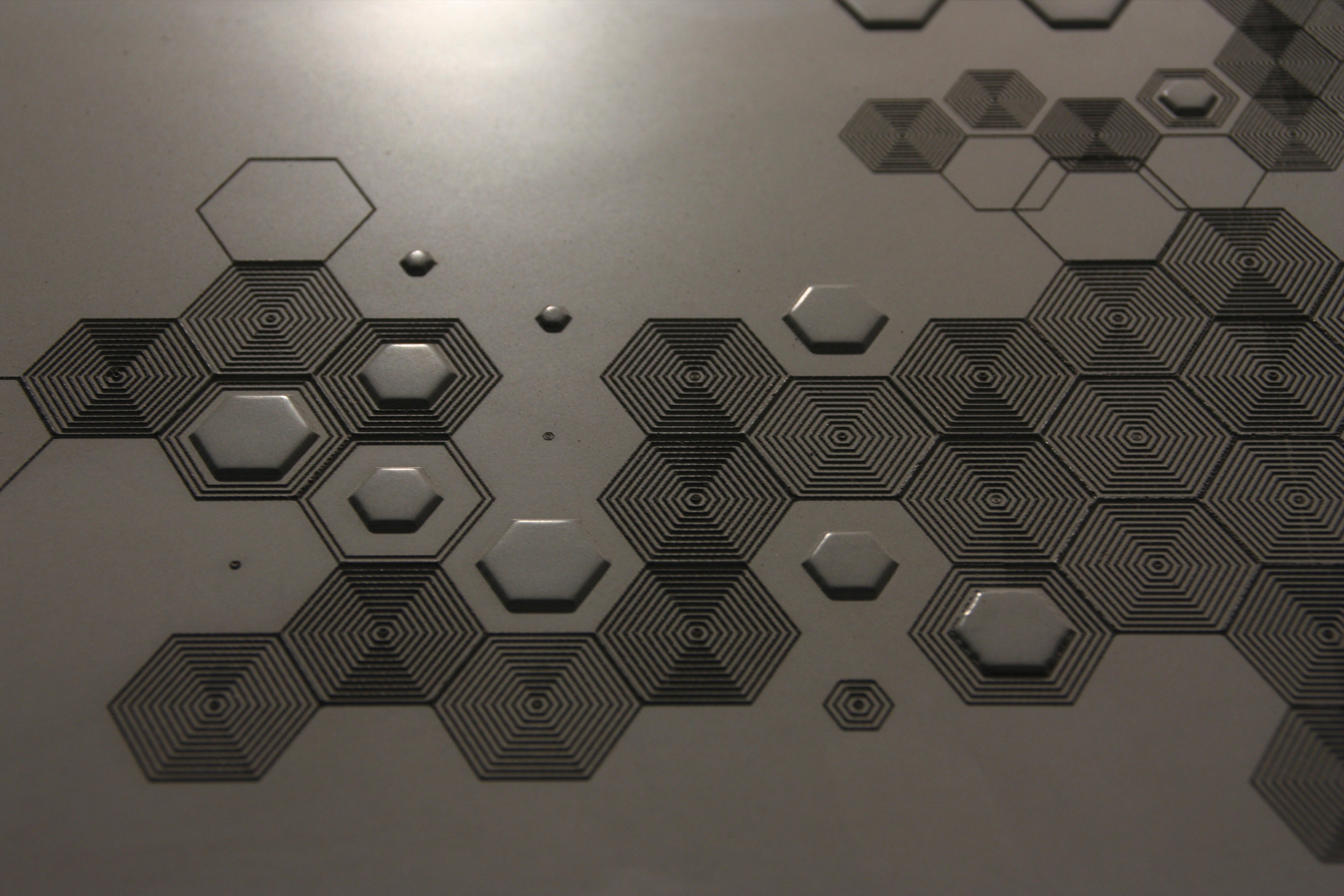 We can create one-off, bespoke surfaces or can incorporate various pattern and graphic design effects. This allows artwork, logos and branding themes to be included. It is also possible to combine various layering effects to create both simple and complex designs, incorporating illustration, photographic, geometric, arabesque and textile effects.
